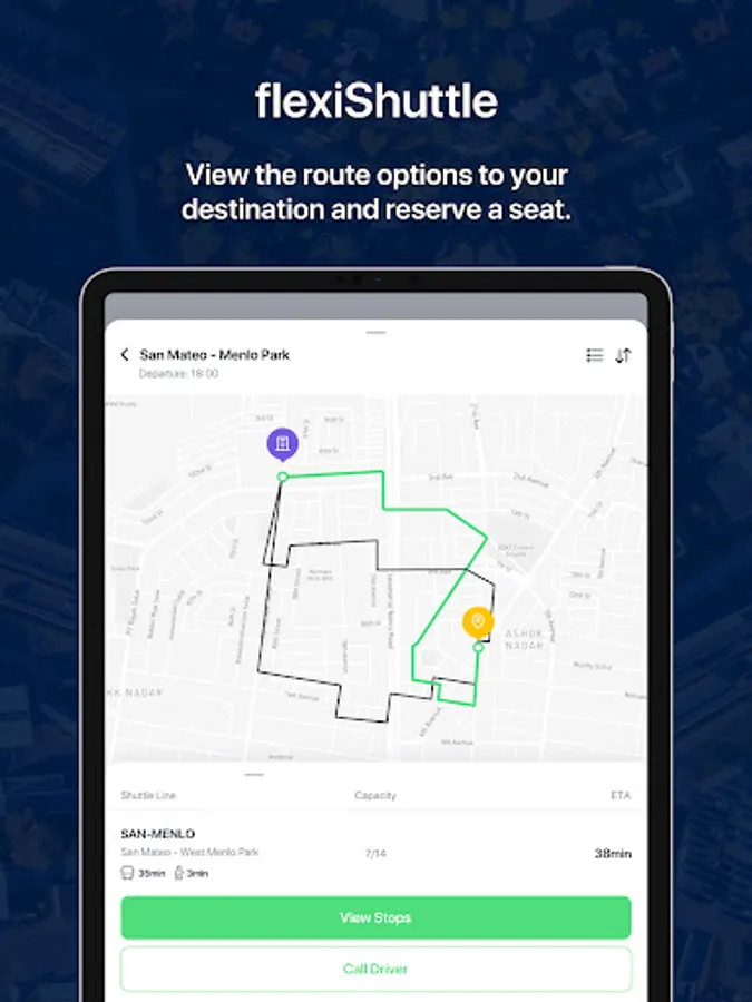 ● Access to fixed line and demand responsive shuttles as well as vanpools. Reserve a seat on existing routes or create a request on dynamically routed shuttles. Track the location of the shuttle in real time and get notified when it approaches your pickup point with flexiShuttle.