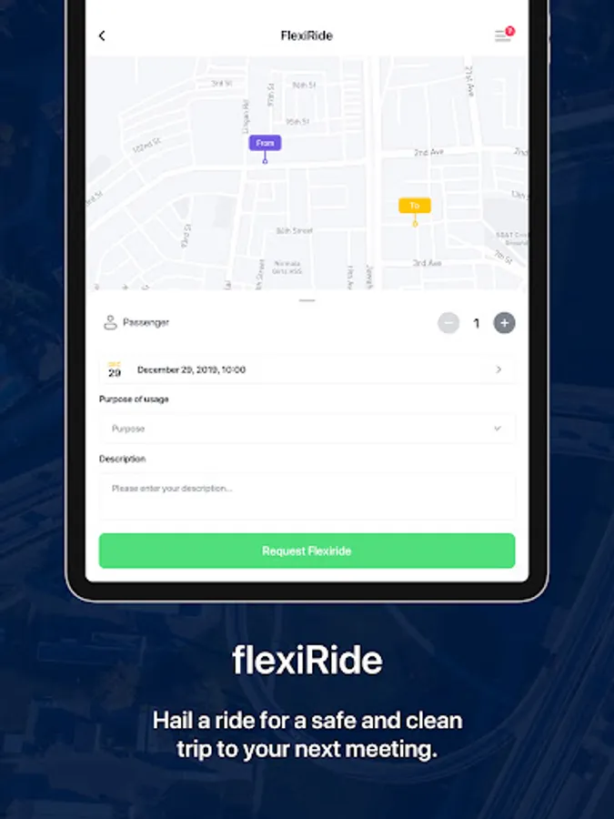 Flexigo empowers corporations, campuses, hospitals and business parks as a single point platform for mobility. flexigo solutions can be configured and deployed in modules to suit the needs of your organization and can be extended in the future. The whole suit combines fixed line and demand responsive commuter shuttles, vanpools, company pool car sharing, corporate ride hailing and mileage and cost reporting, enabling a complete mobility service solution set for employees and members catering for both commute and intraday mobility requirements.