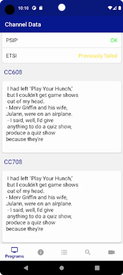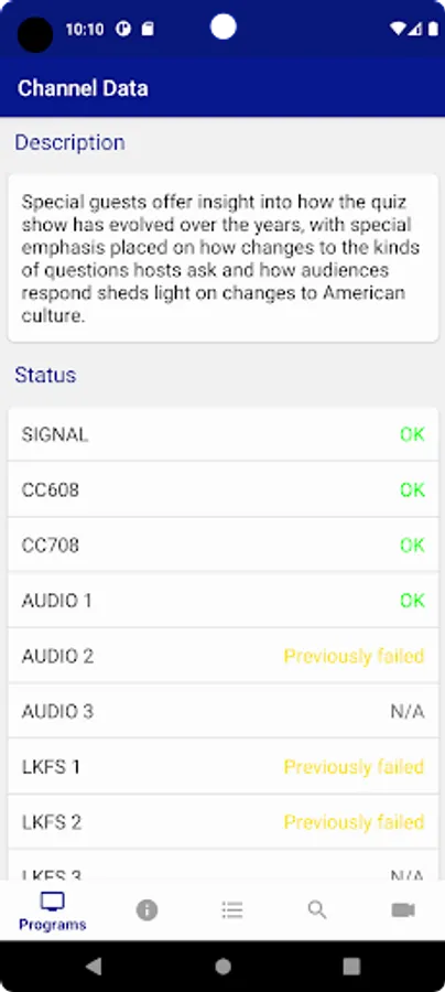 Once added, view/monitor all your content sources and the associated channels/programs for channel status, Program Guide data and video playback.