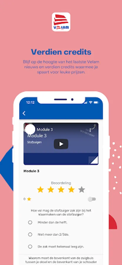 The Velam App. Download the app and start collecting credits. Earn credits and stay up to date with the latest Velam news. With the credits you save for nice prizes. Get all the info you need. Receive instructions about your work, get tips from your colleagues and get to know each other better. Receive notifications that are important. Get the news on your phone first so you never miss a thing. Download the app today and log in with your email address and password from the invitation you received.