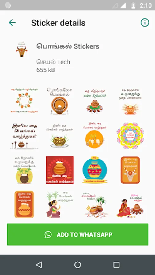 We hope you will like this app as the stickers are unique and looks great and also available in Tamil Language. Share your Pongal Greetings through WhatsApp Stickers.