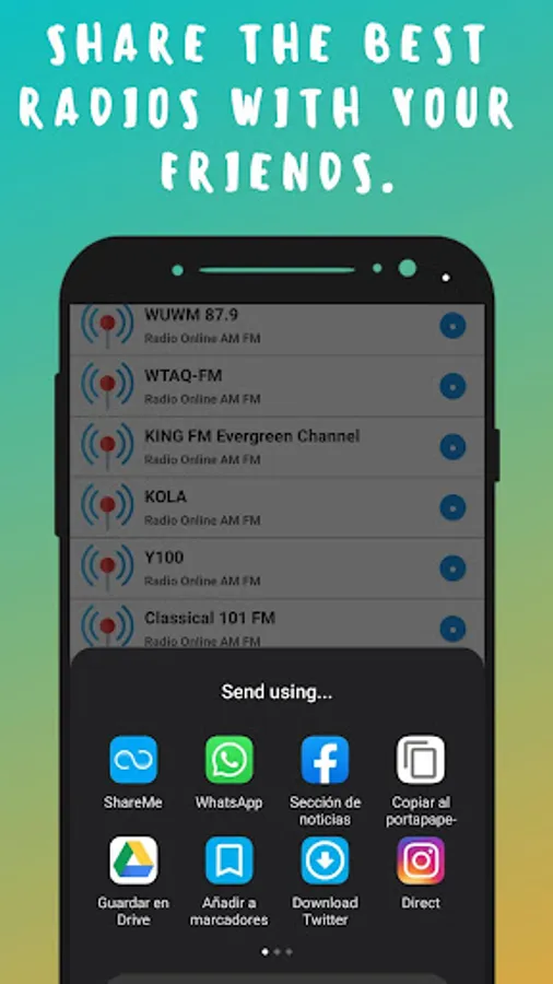 We allow our users to share this delight with friends and family. You can share the link of this Online AM FM radio directly from the application.