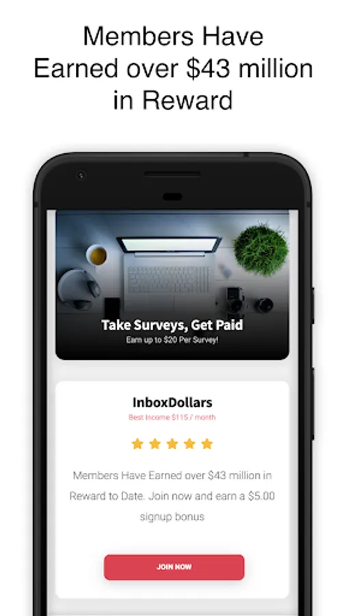 Join Opinion Rewards Club and earn $5 when you complete your first survey.