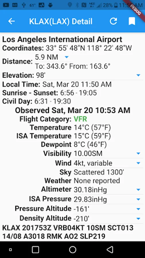 Globe Trotter uses hourly AviationWeather.gov weather data, called METARs to display current weather conditions worldwide. This source is the only accepted source of weather conditions accepted the US FAA.