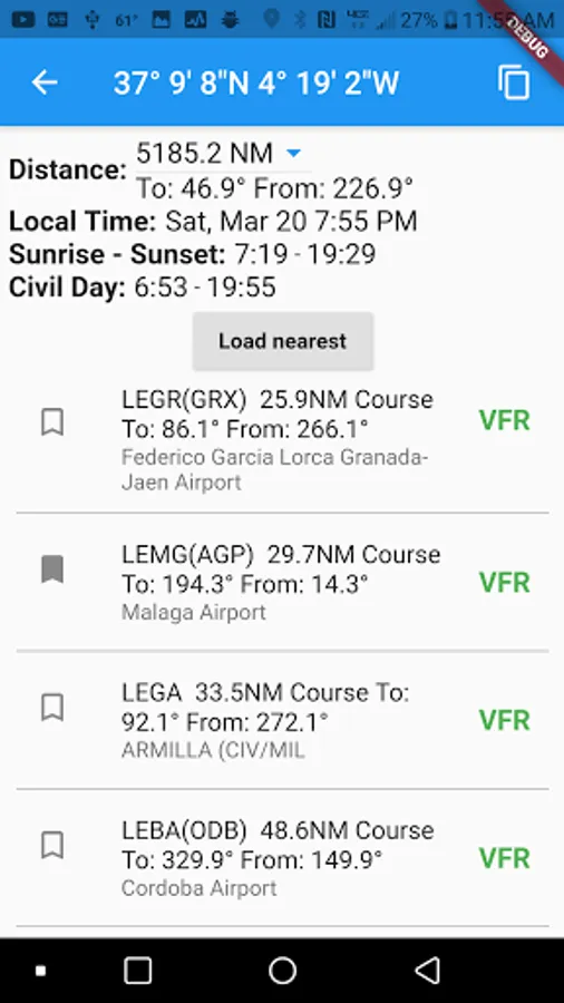 While the coordinates for the stations situated at the world's airports are often coarse and inaccurate, Globe Trotter can also calculate distances and bearings between them and the device's location.