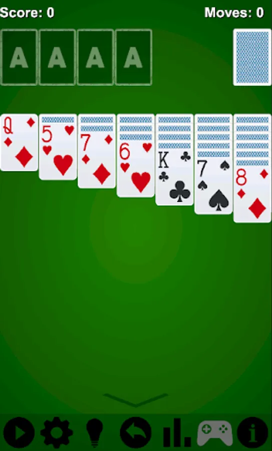 Klondike solitaire classic uses one deck (52 cards). Twenty-eight cards are dealt from the deck into the 7 tableau piles with the number of cards per pile increasing from one to seven from left to right. The top card is face up, the rest face down.