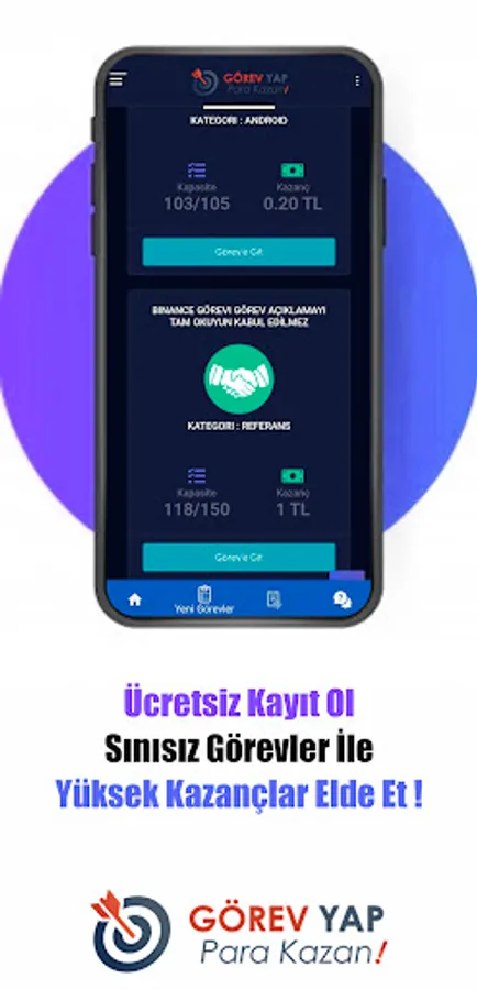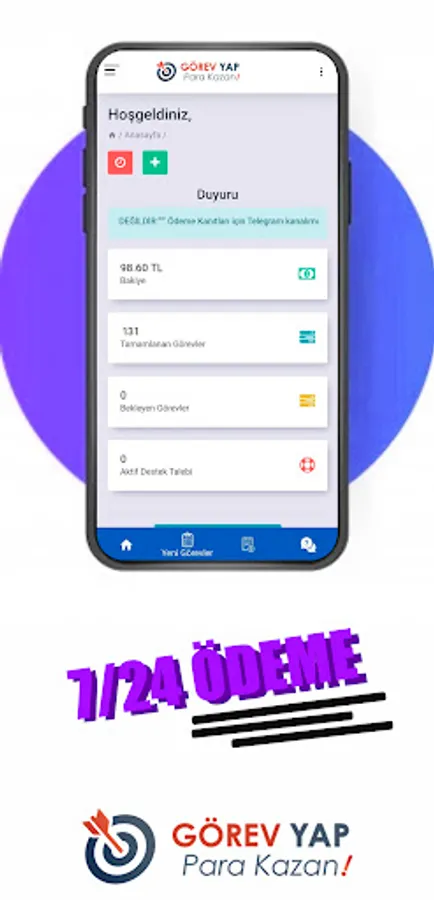 When a new task comes, get notifications, do tasks immediately, thanks to the application, earn money.
