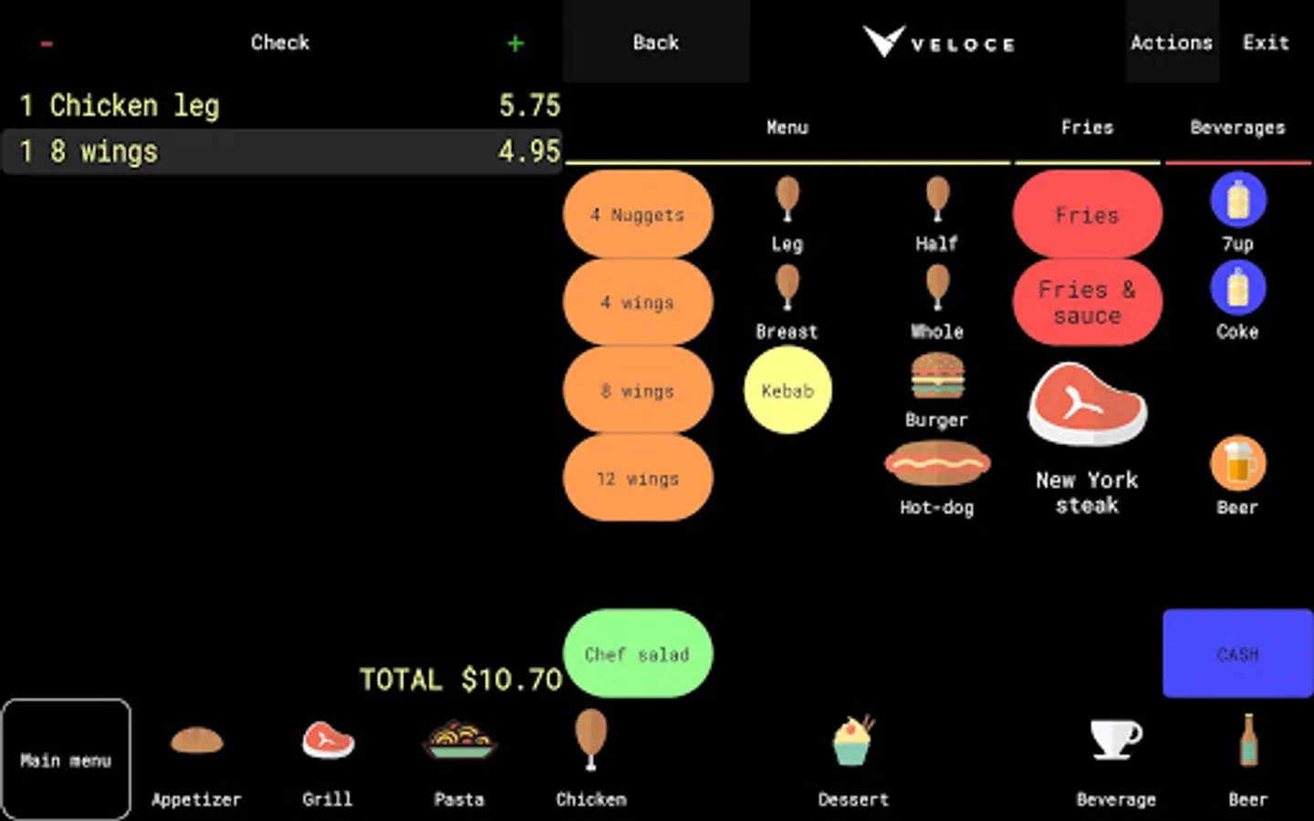 The Veloce POS software is the most efficient point of sales (POS) application in the world. This system offers users more than 2500 features and is in a class of its own. It is perfectly suited for restaurants, bars and nightclubs. You will be able to: