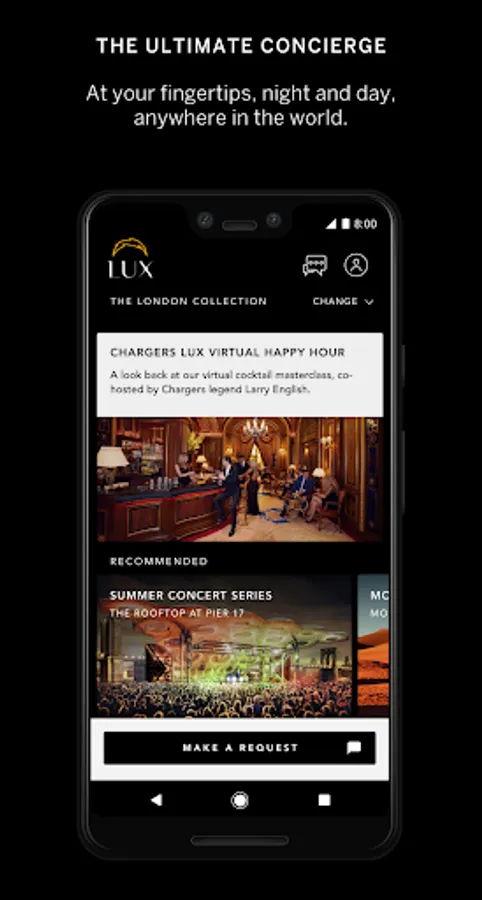 Chargers LUX app is a digital lifestyle concierge service for members only.