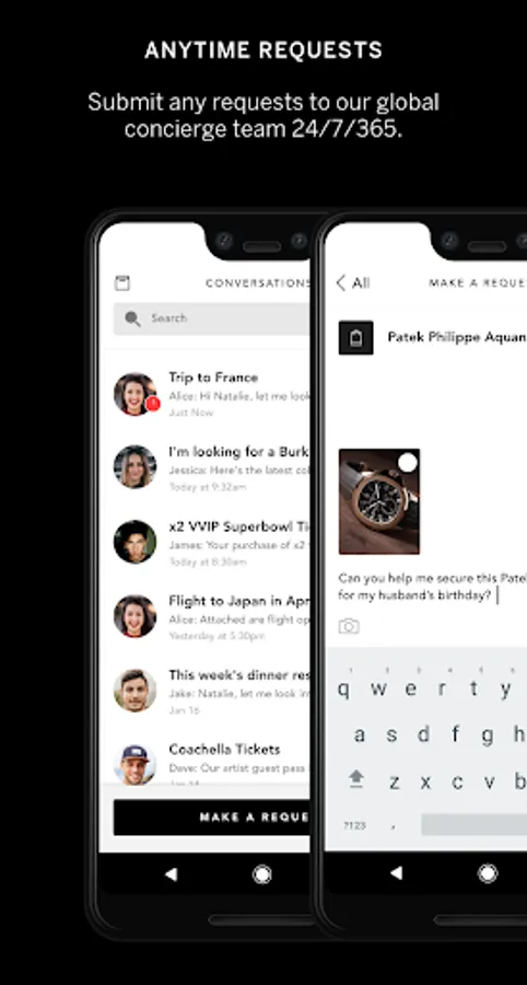 Members are given an unparalleled 24/7/365 service with a guaranteed 1-minute response time. Benefits include seamless fulfillment across dining, experiences, travel and luxury goods requests.