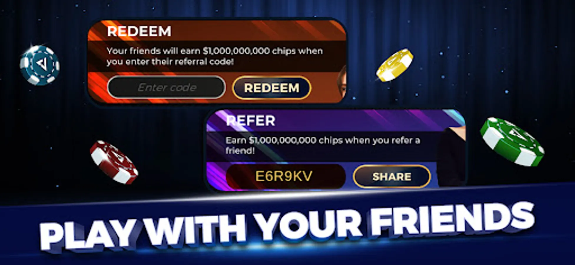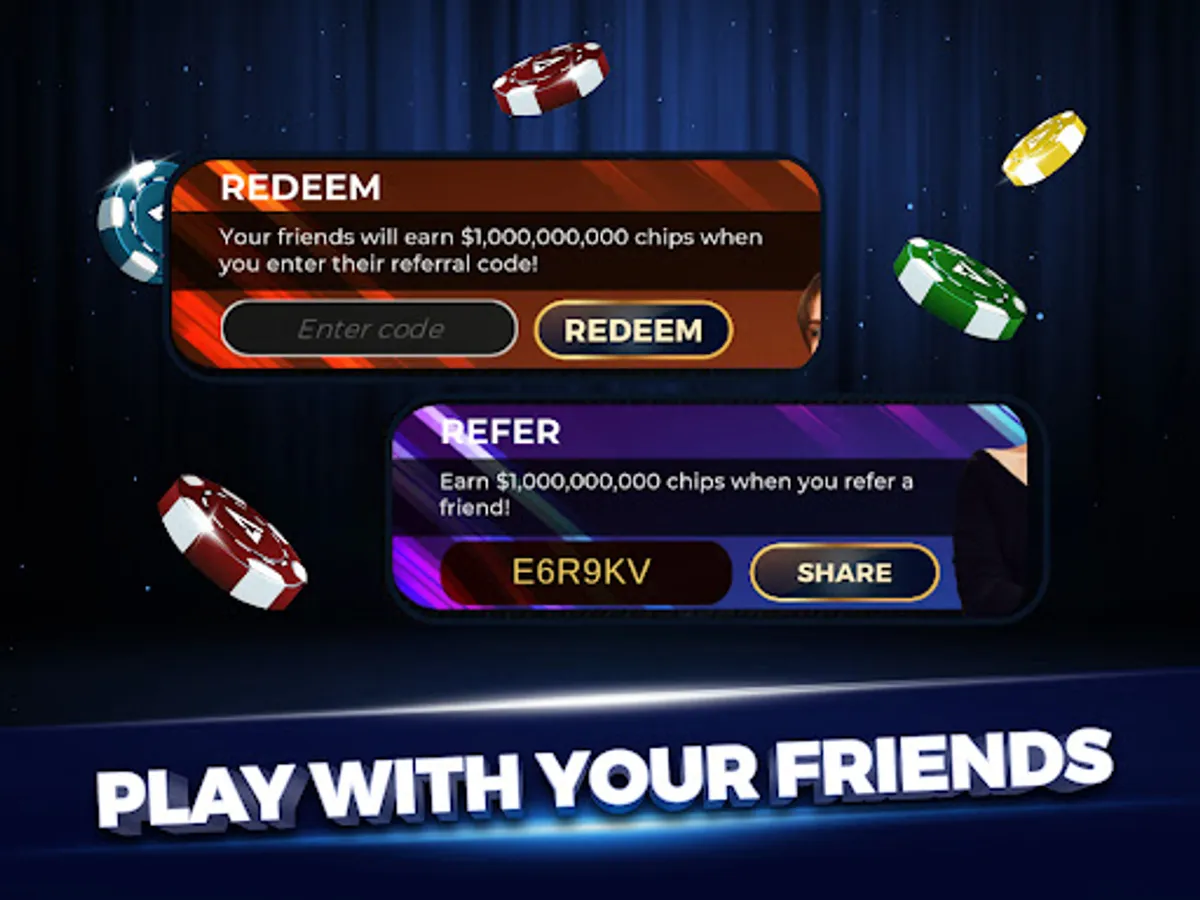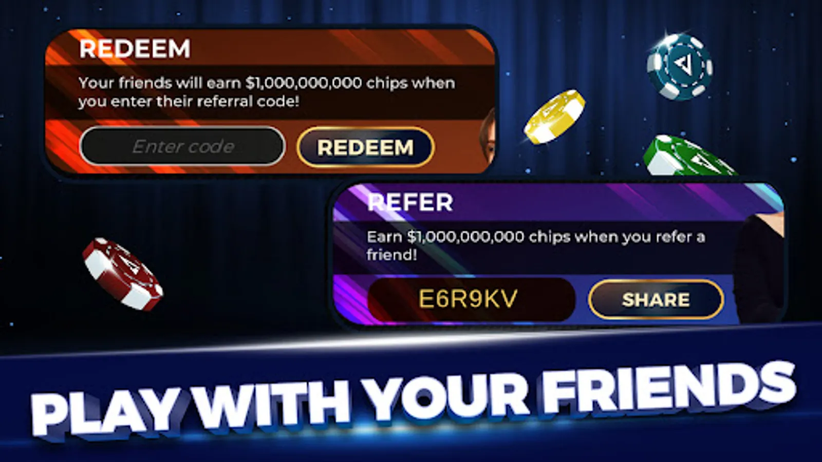 SOCIAL POKER CARD GAME EXPERIENCE: Challenge your friends to poker games, practice your poker face against opponents, and send chips to whoever you want! Invite players to your poker room and chat with opponents easily without having your casino card game interrupted. With every Texas holdem poker player you invite to Velo Poker, instantly win free chips!