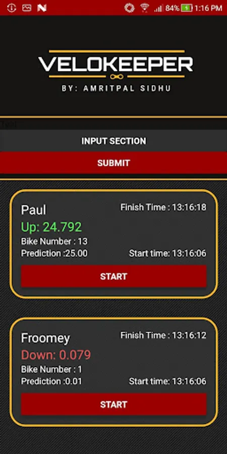 Welcome to VeloKeeper. This app allows the time keeper to keep track of individual racers in an Individual Time Trial (ITT). This app is specifically designed for this purpose!