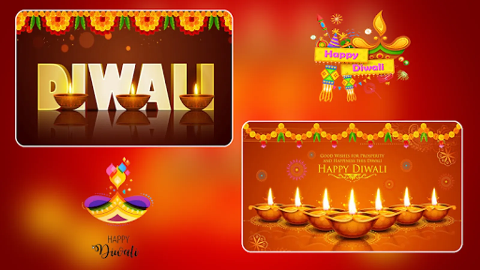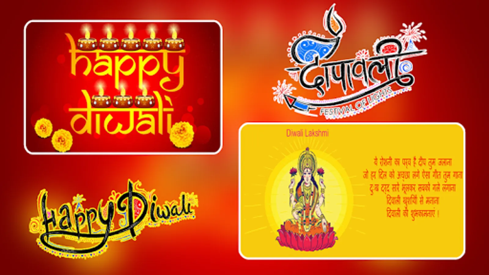 Diwali Greeting cards app can send beautiful Diwali greetings, Diwali wishes, Diwali messages, Diwali stickers to your friends, relatives, loved ones, colleagues and business partners.