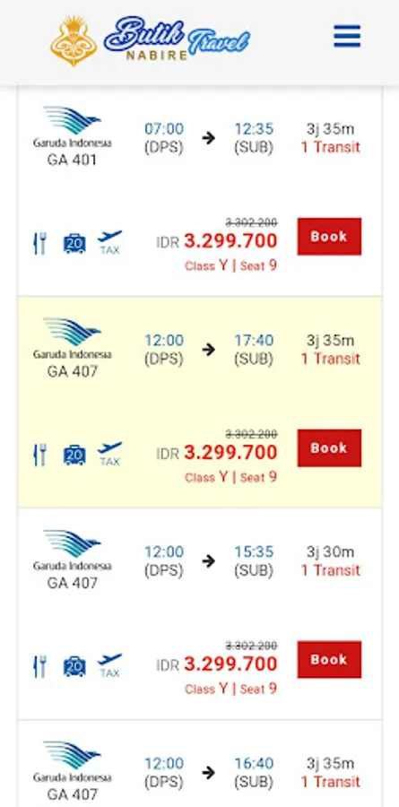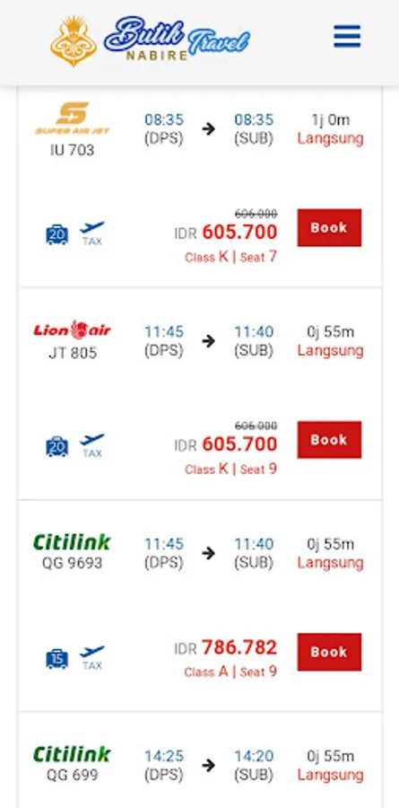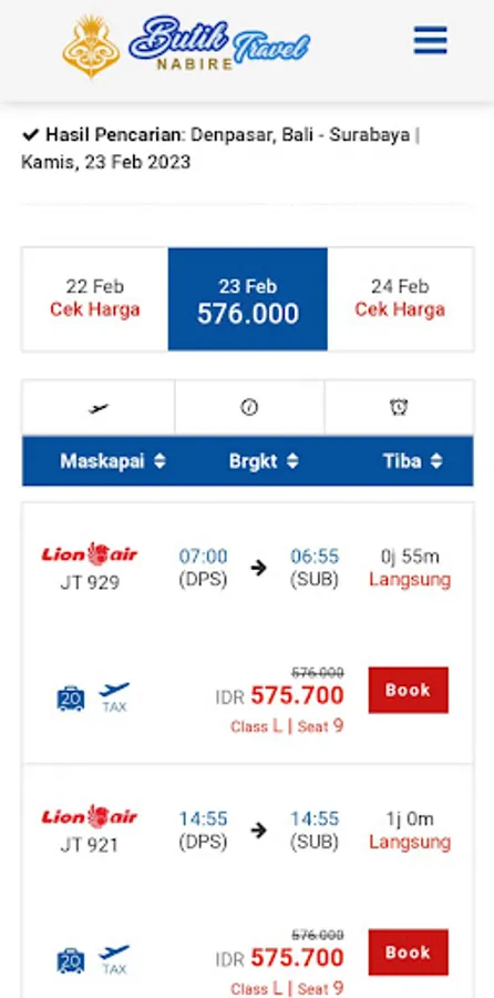 Harga yang ditampilkan sudah termasuk pajak, Iuran Wajib Jasa Raharja, & fuel surcharge.