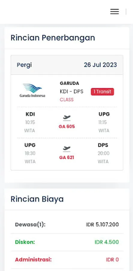 Harga yang ditampilkan sudah termasuk pajak, Iuran Wajib Jasa Raharja, & fuel surcharge.