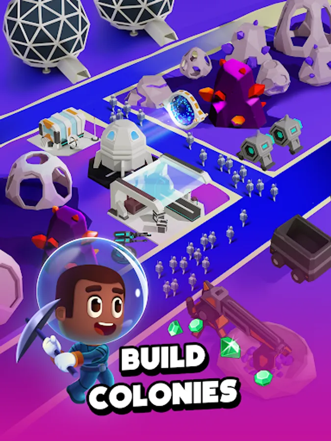 • The different planets enable you to grow and upgrade your colony and collect even more idle cash in space.