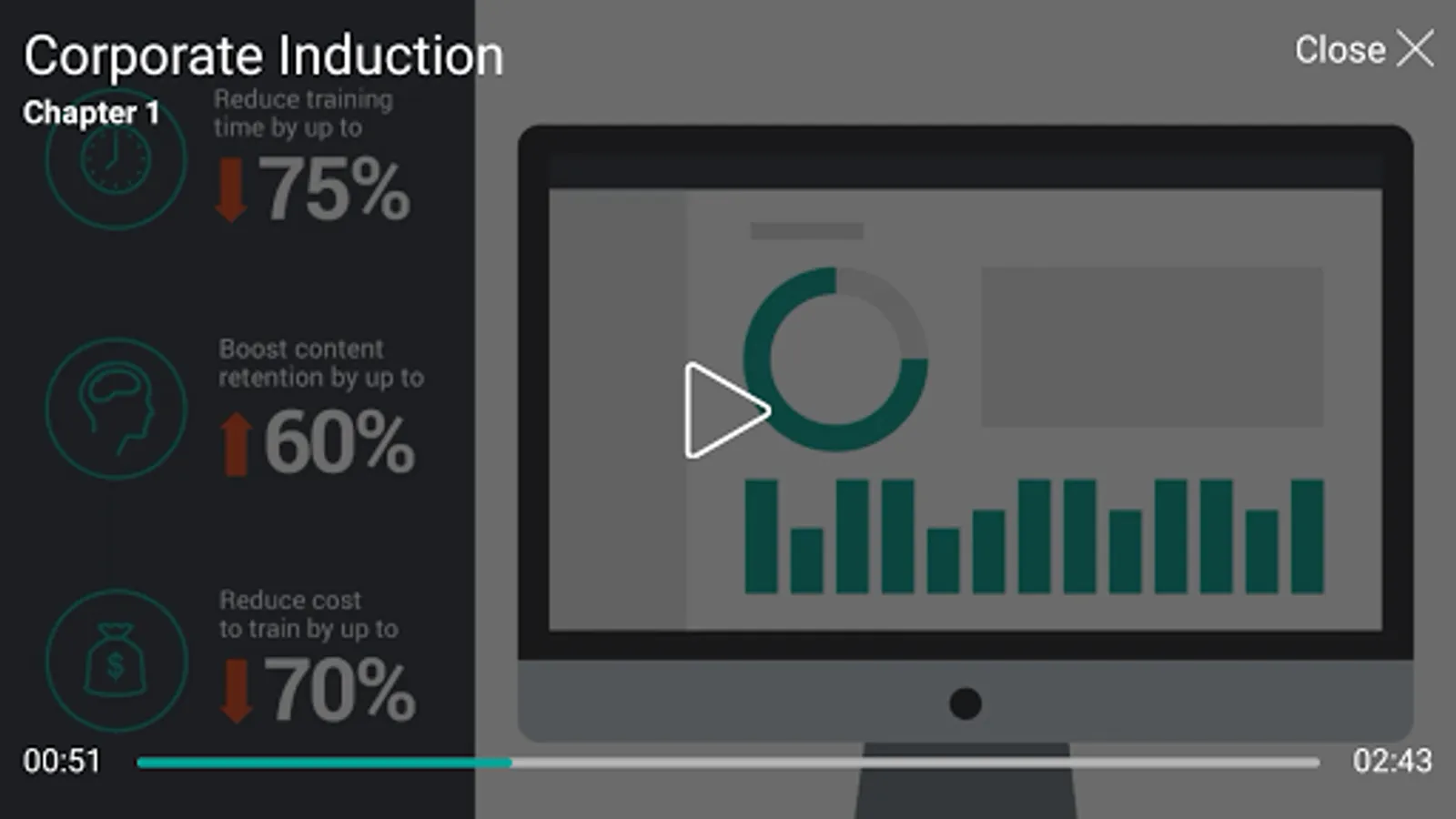 Damstra video lessons make workplace learning more dynamic and accessible, by improving learning and retention through multimedia engagement and interactive quizzes. Our bandwidth-optimised videos always stream smoothly and are password-protected. They can be watched on a smartphone, tablet or computer anytime anywhere. By using Damstra’s innovative video elearning platform, businesses can significantly reduce training time, costs and effort, and boost retention and engagement as well.