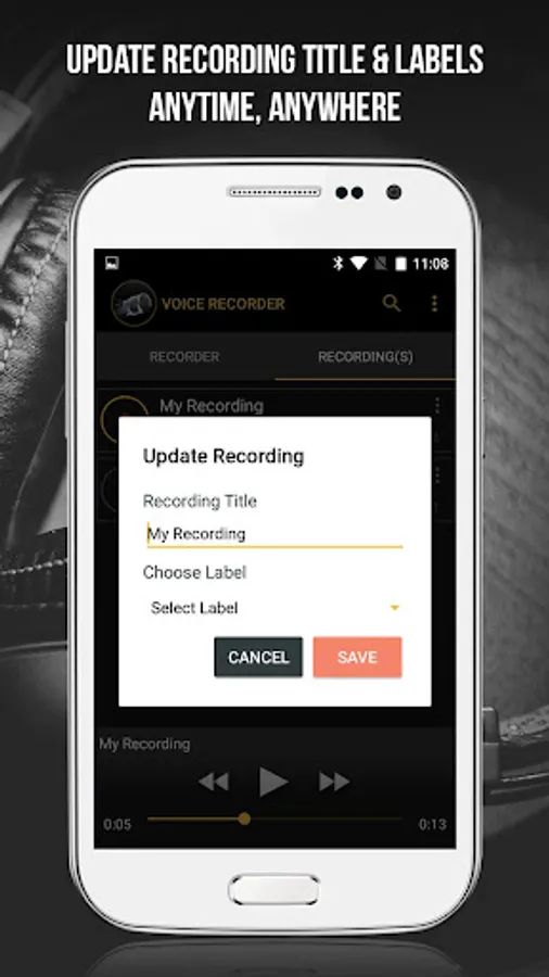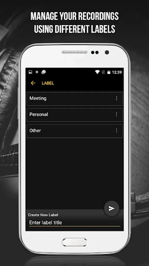 ► Manage labels- Users can easily categorize recording files while saving them. Just select the category label like personal, business, meeting, or create a category of your own like interviews, lectures, memo, concert, meetings, speeches etc.