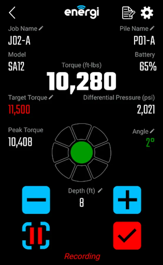 Energi is designed to help you get the most out of your planetary anchor drive attachment. This free app exclusive to Dinamic Oil customers monitors and records real-time helical pile installation information. All recorded data is formatted into an easy-to-read installation report and can be emailed from your mobile device as a PDF.