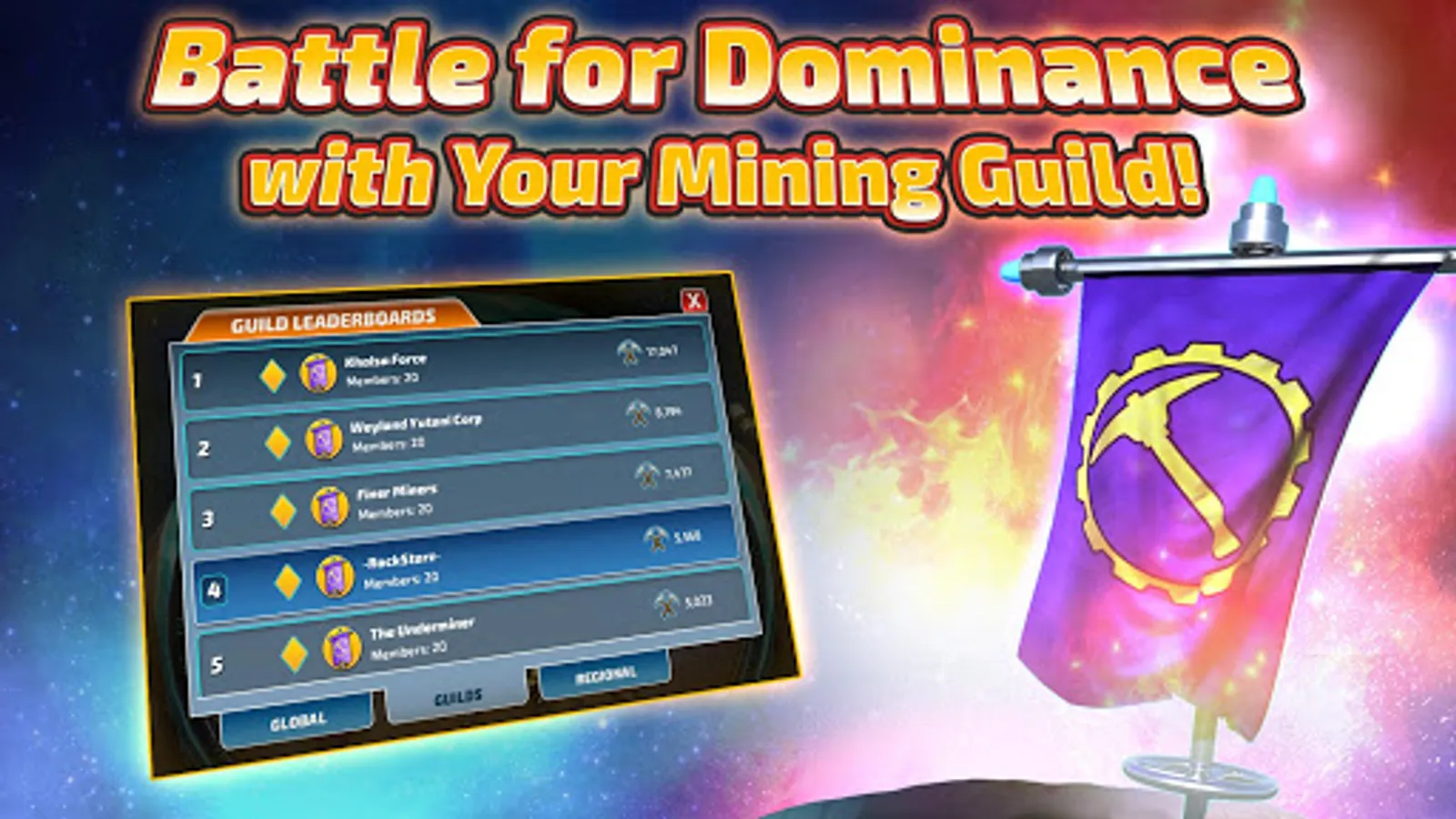 Forge powerful Mining Guilds with your friends, conquer Mining Outposts to expand your domain, then crush the competition in explosive, arcade-style PvP base attacks!