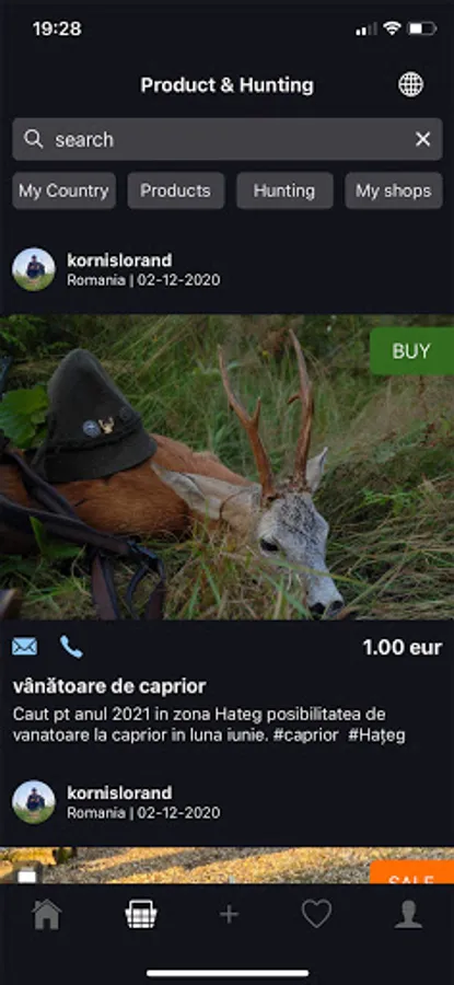 - In the advertisement section you can post and search between hunting products and make purchases.