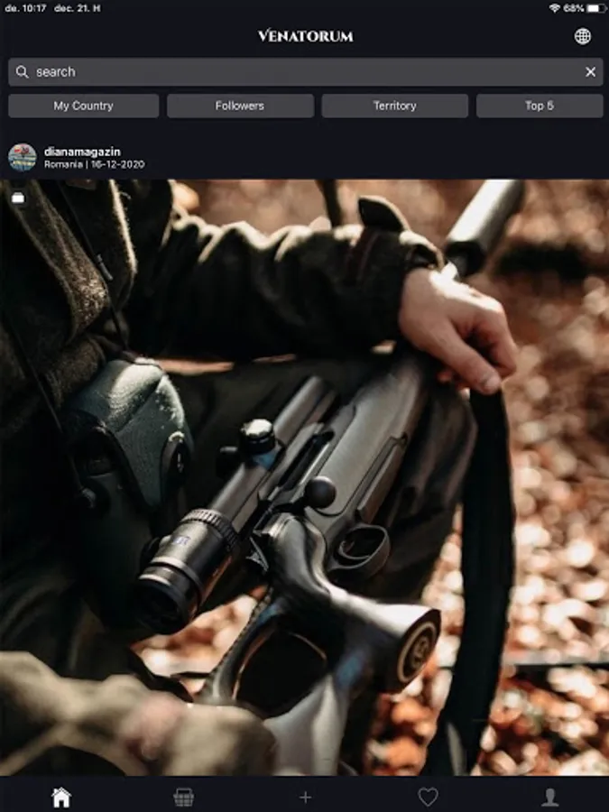 - on the profile page (favorites function), set the favorit hashtags , rifles, caliber, binoculars, equipments, hunts, game species, clothing size, shoe size etc.. We will collect up-to-date information about any product or hunt you interested in and you will find that in the Favorit function with one click.
