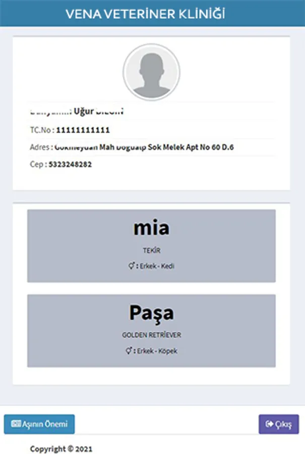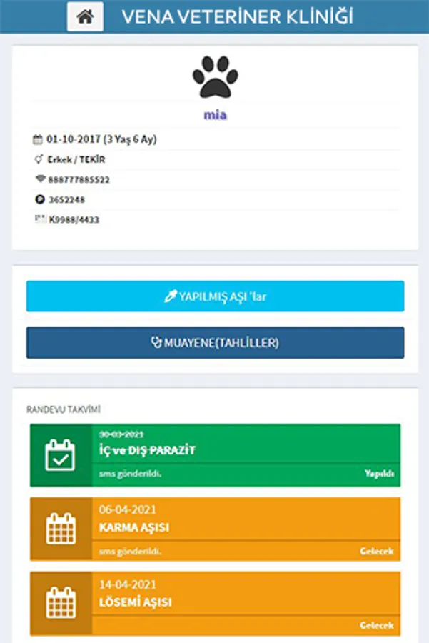 Vena Veterinary Clinic patient / vaccine follow-up program (Only registered patients in our clinic can use it).