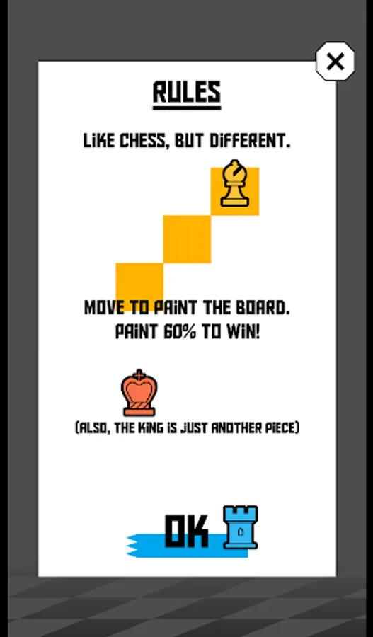 The rules are just like chess, except that you don't win by "checkmate". In stead, you must paint a certain percentage of the chess board.