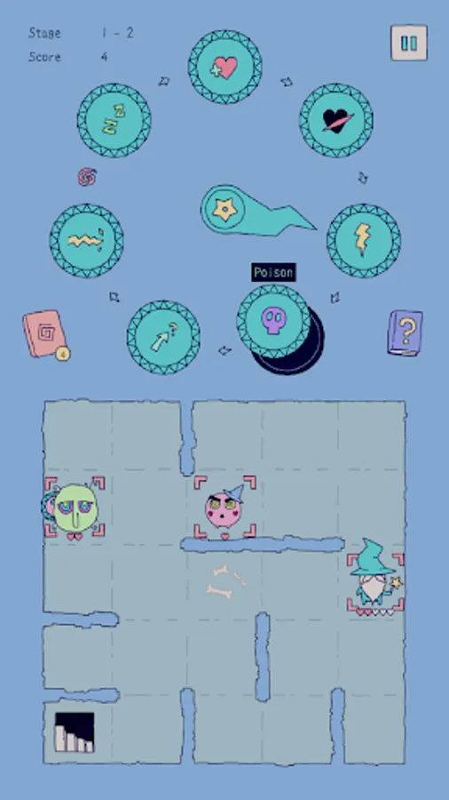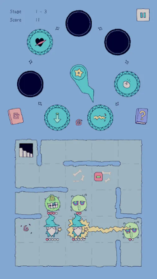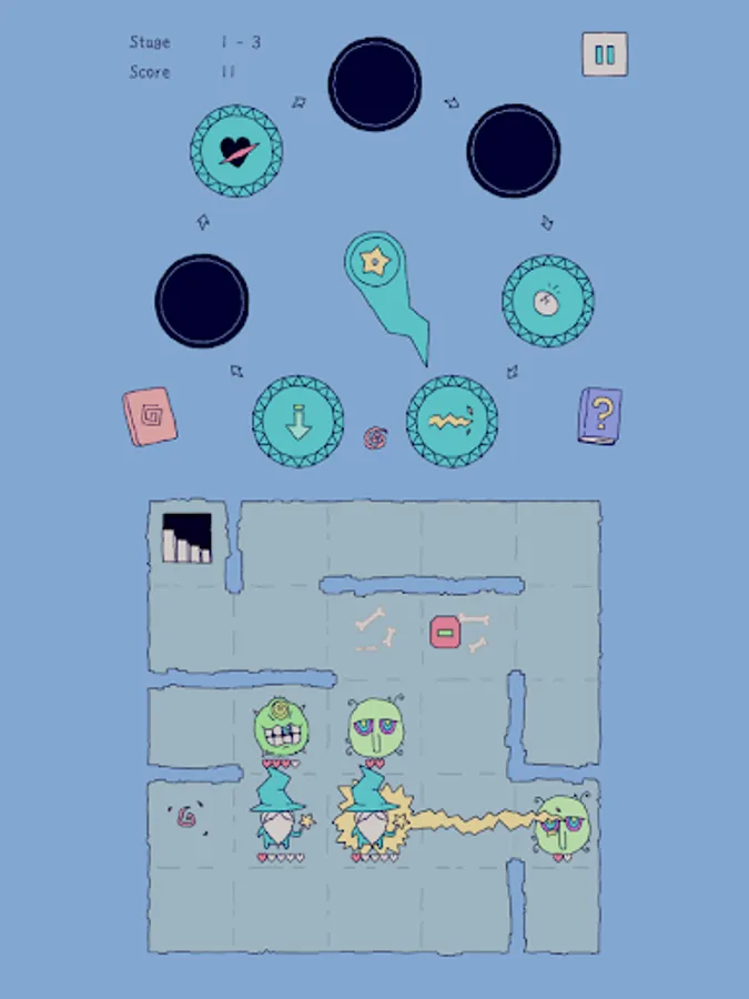 Spells are placed on the Magic Clock. After each move the clock hand turns and you must make use of the spell it points at. The spells remain on the clock indefinitely. If you wish to get rid of a spell, you can drag it from the clock directly to a target. It will be executed once more and disappear.