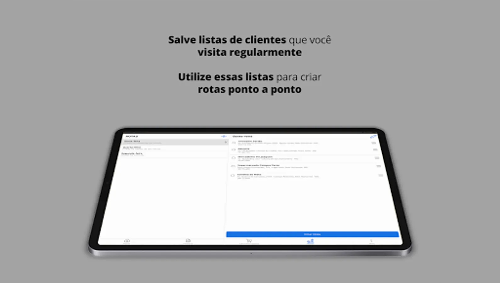 - Save customer lists and create navigation routes, on Google Maps, to visit customers