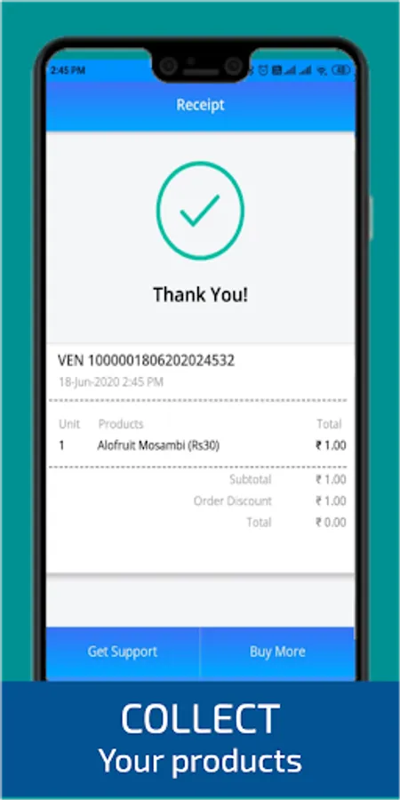 The Vendekin app gives you a seamless experience by just scanning a QR code to view all the products in the vending machine as a catalogue on your smartphone, select the products you need, make the payment using one of the many payment options integrated within the app and collect your products.