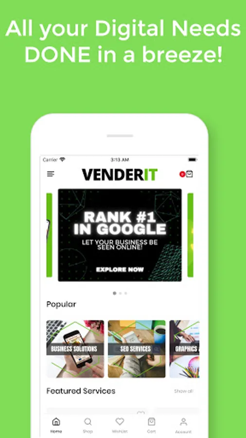 Search hundreds of Digital Products and Services with the new VenderIT Mobile App! Our network of top-notch developers & creatives are ready to take on any project, big or small!