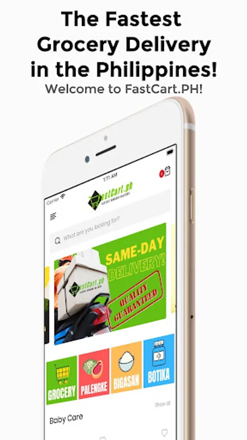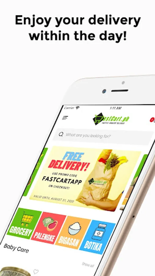 Skip the long lines and let FastCart.PH take care of all your grocery needs! From Canned Goods, Baby Products, Fresh Meat, Veggies, Home and Personal Essentials to Pharmacy Needs - we have it all! Download, Register and enjoy all these: