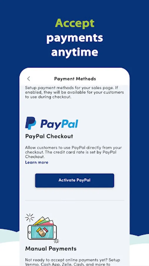 Looking for a super easy way to start selling online? With no web and design skills needed, VenderUp lets you quickly launch your own sales page in minutes - all from your phone. Use VenderUp to sell anything from collectibles, handcrafts, tickets, clothes and jewelry to more. You can connect your PayPal to accept payments and offer other methods like Cash, Venmo, Cash App and Zelle.