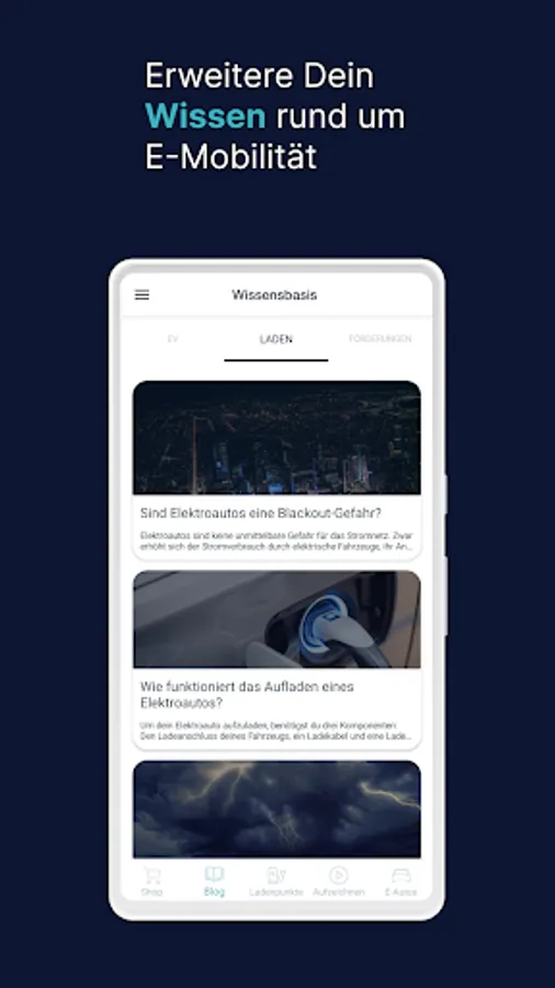 For everyone who is already on the road electrically but lacks the infrastructure to charge, we offer home charging stations for at home and a charging point map showing all public charging stations. The charging station directory is provided by GoingElectric (https://www.goingelectric.de/). As with the cars, services can be selected for the charging stations and a non-binding offer will be sent within one working day.