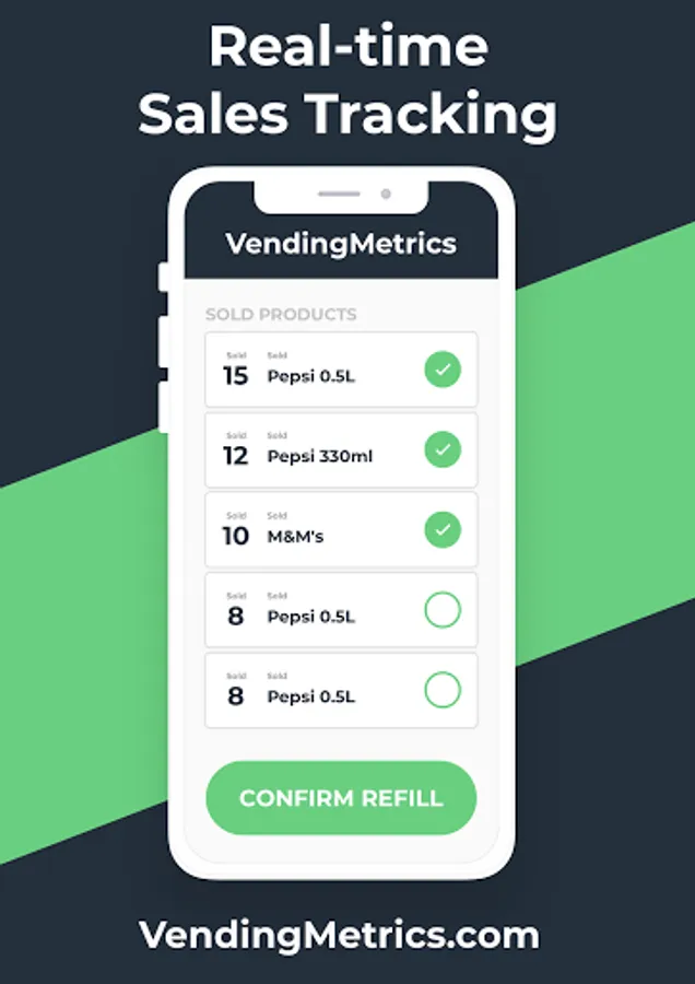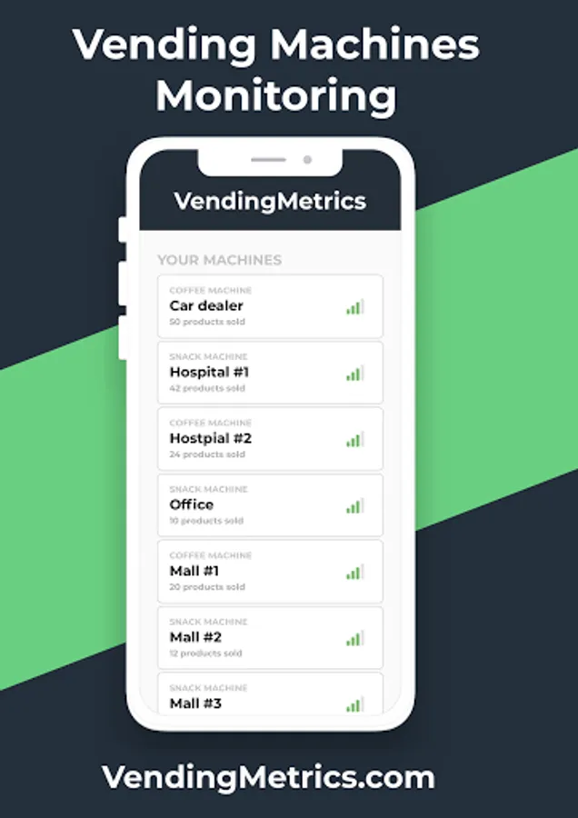 VendingMetrics is a web and mobile application that helps you track all aspects of your vending business. From how many people are buying your products, to how many orders have shipped and what each transaction cost. VendingMetrics allows you to set up alerts for important events such as low stocks level, customer issues, vending machine malfunction and more.