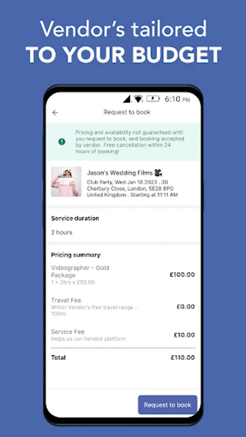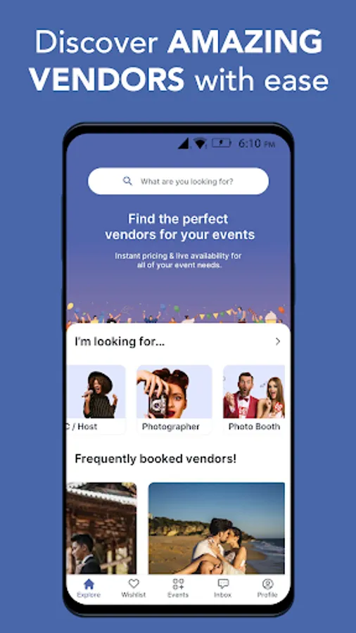 Simple tool for anyone to source and book event suppliers in just a few taps!