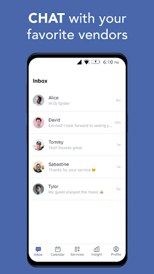 • Chat with vendors via the app