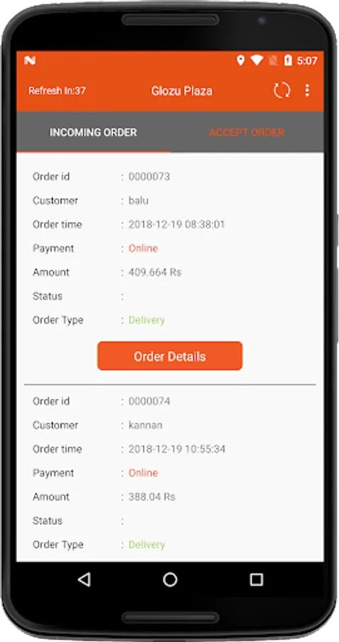 1. Customer order request is received to the respective vendor on both the web and mobile app
