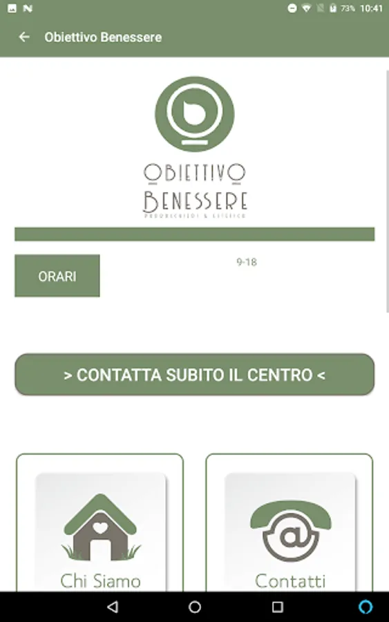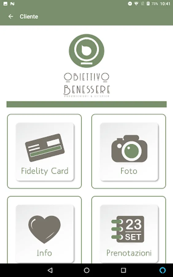 The app was conceived and designed specifically for customers of the "Obiettivo Benessere" center. You can make reservations for treatments, consult your loyalty card, view promotions, create your own photo gallery, and so on.
