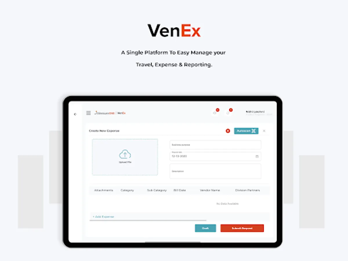 VenEx makes the Bill Reimbursable process simple and convenient. The claimable bills can be easily submitted and get reimbursed through the application. All the stages will be notified with user through email, from submission to completion of Expense request. Draft facility can be used to save your bills for future. Approvers can directly review and process the Expense Requests sent by Employees. Convenient to Export and save Data in a safe method. Integration with INTACCT service provides proper Ledger keeping. Review process setup done in convenient path in which a multiple reviewers and approvers can be set up for Processing.