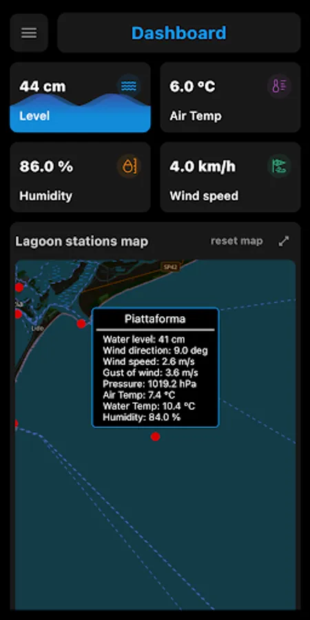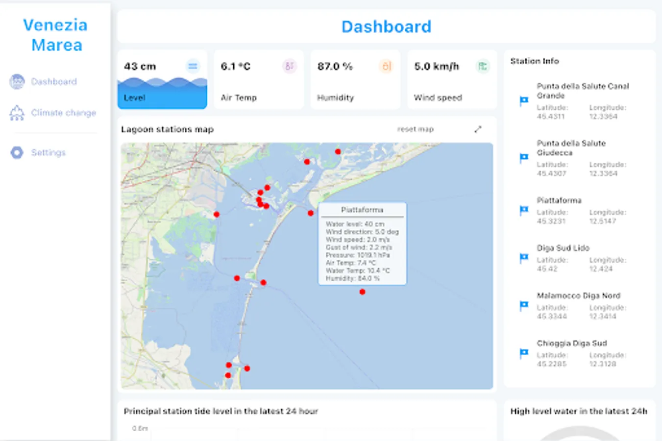 Venezia Marea é l'app che ti permette di monitorare il livello della marea in tempo reale e non solo. Il grafico delle ultime 24 ore ti mostrerà l'andamento della marea durante le ore del giorno. La mappa interattiva ti permetterà di visualizzare tutte le informazioni raccolte dalle stazioni di misurazione sparse per la laguna di Venezia. Inoltre potrai consultare velocemente i dati relativi a: - Livello - Umidità - Velocità del vento - Temperatura dell'aria