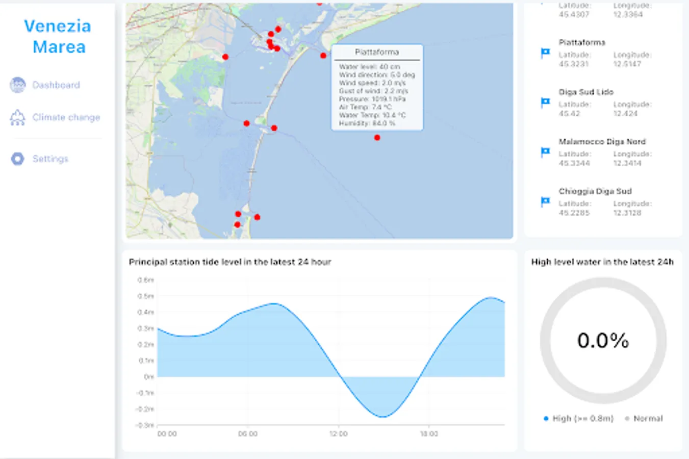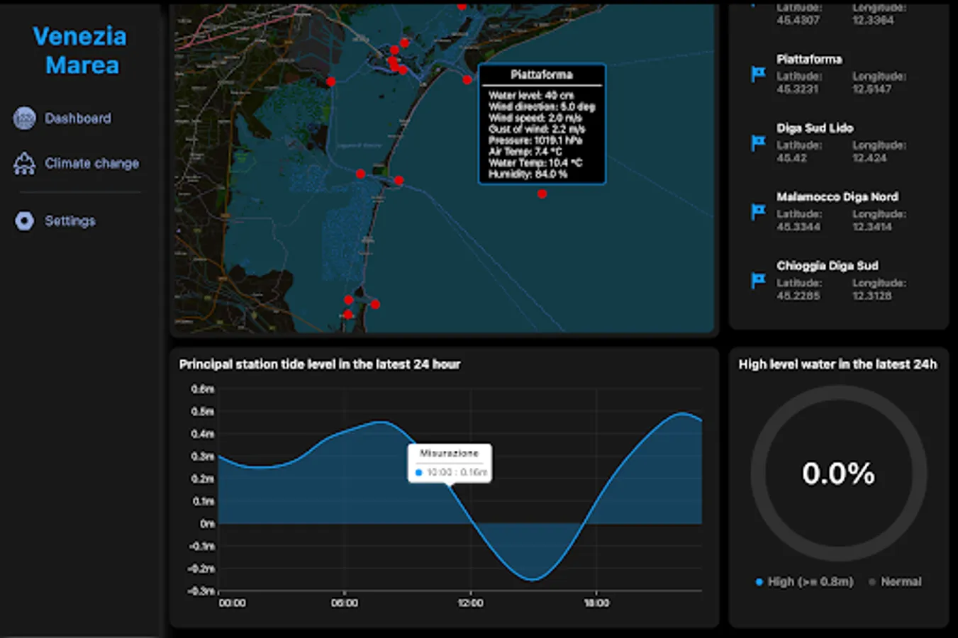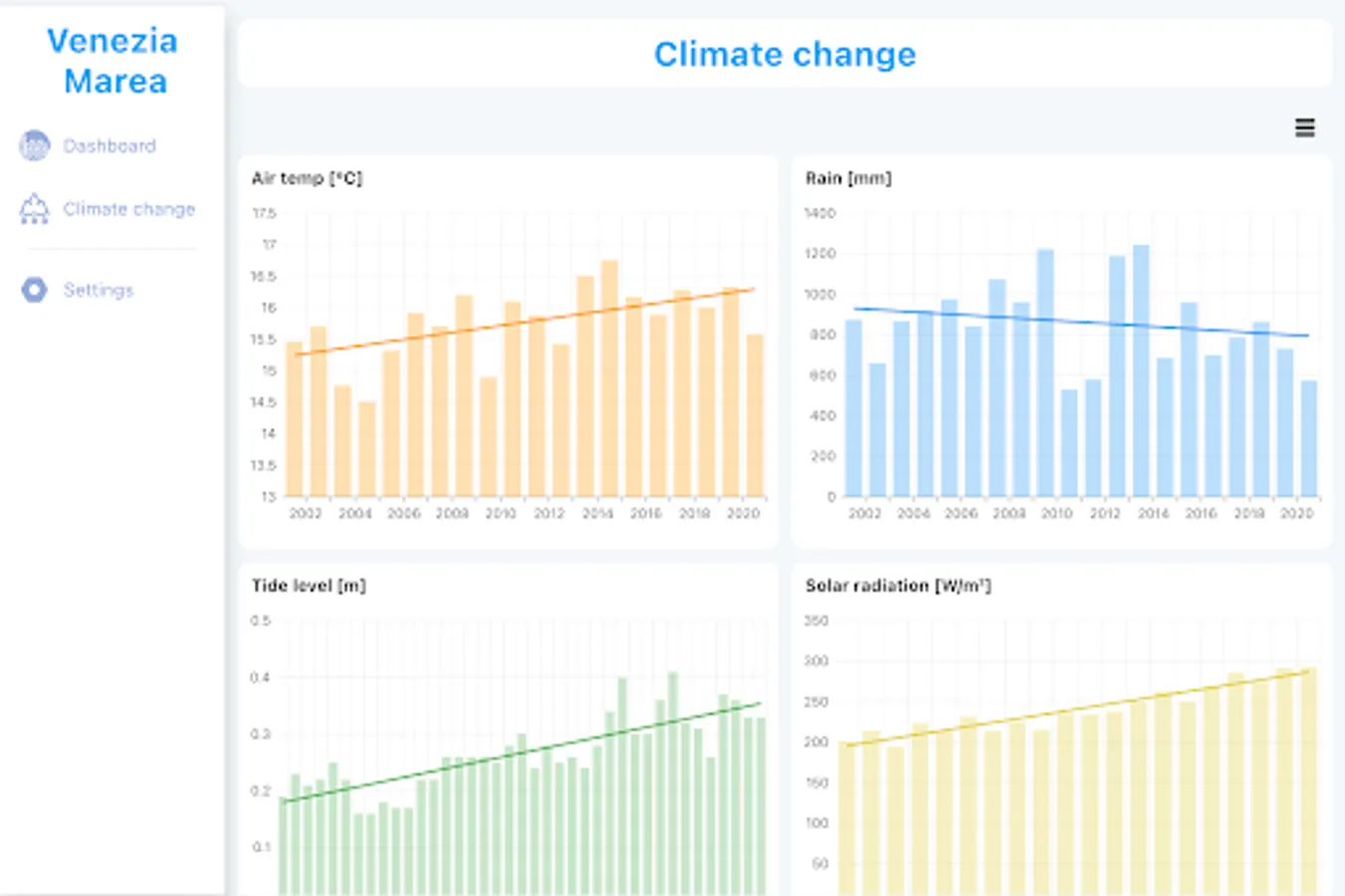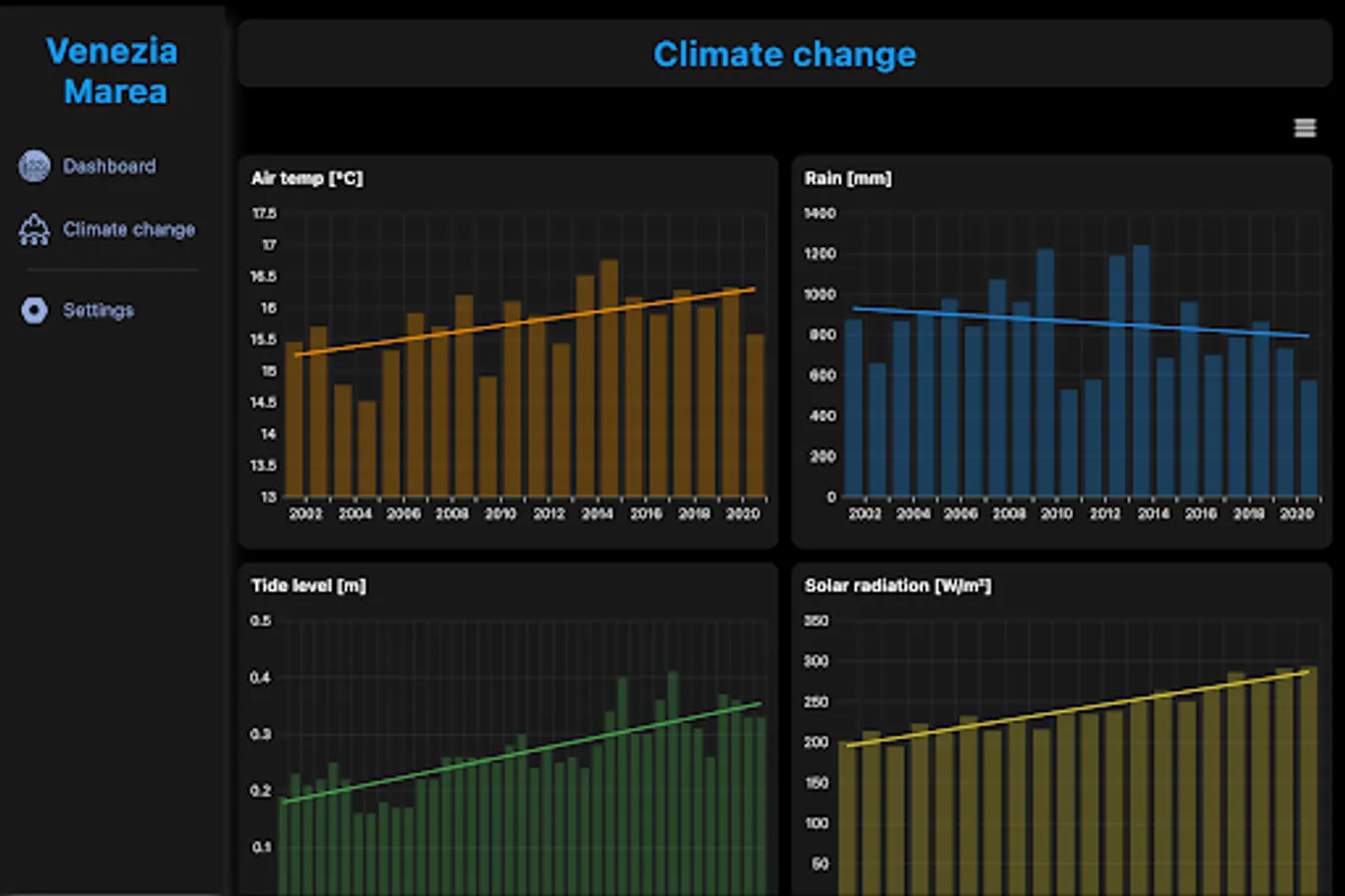 ❗Sezione dati storici: ti permette di visualizzare gli effetti del CAMBIAMENTO CLIMATICO negli anni sulla laguna.