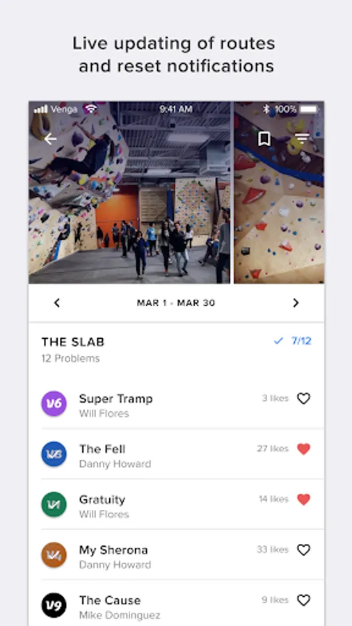 See live routes and problems at your local gym. Get notifications for new resets and see highlighted routes. Make workouts based on your current climbing ability and the actual routes at your gym.