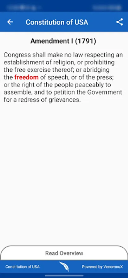 This application provides all the basic features like viewing, searching and sharing the information with a very minimalistic UI design. The app will be regularly updated in accordance with the newly added amendments in the constitution.