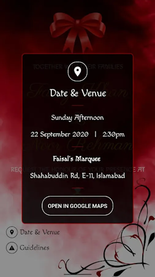 You can customize any text in the app, including names, dates, venue, guidelines and background of the app. You can also customize the text colors.