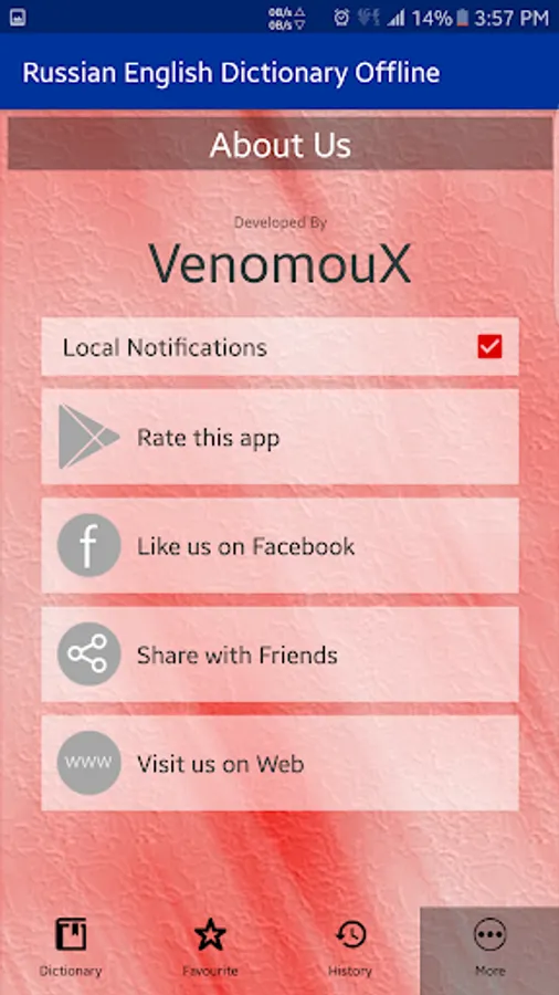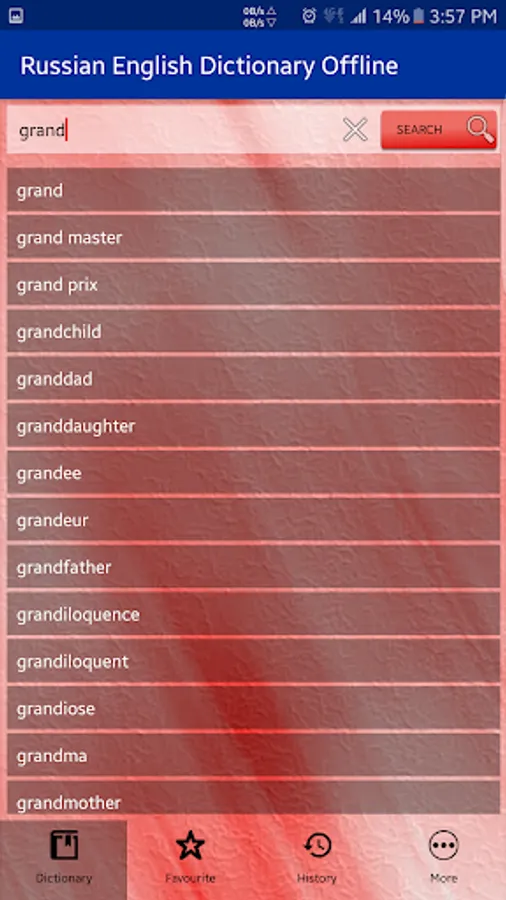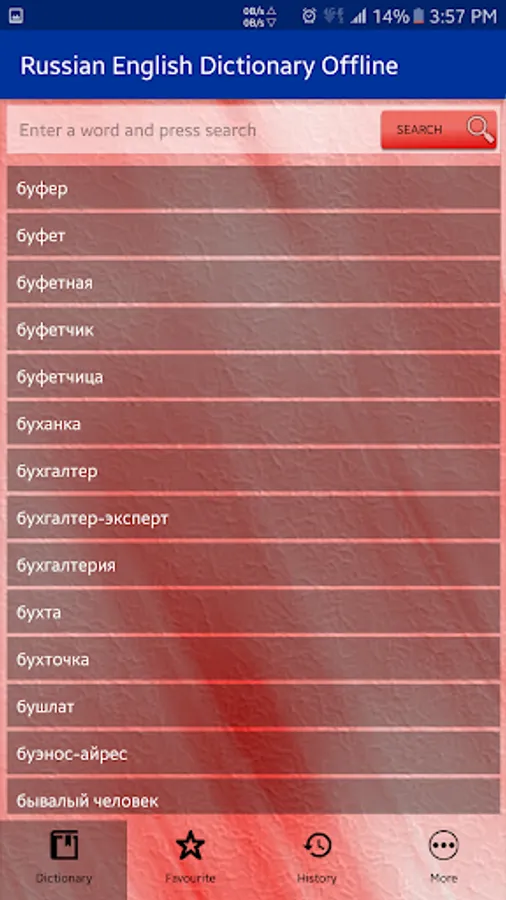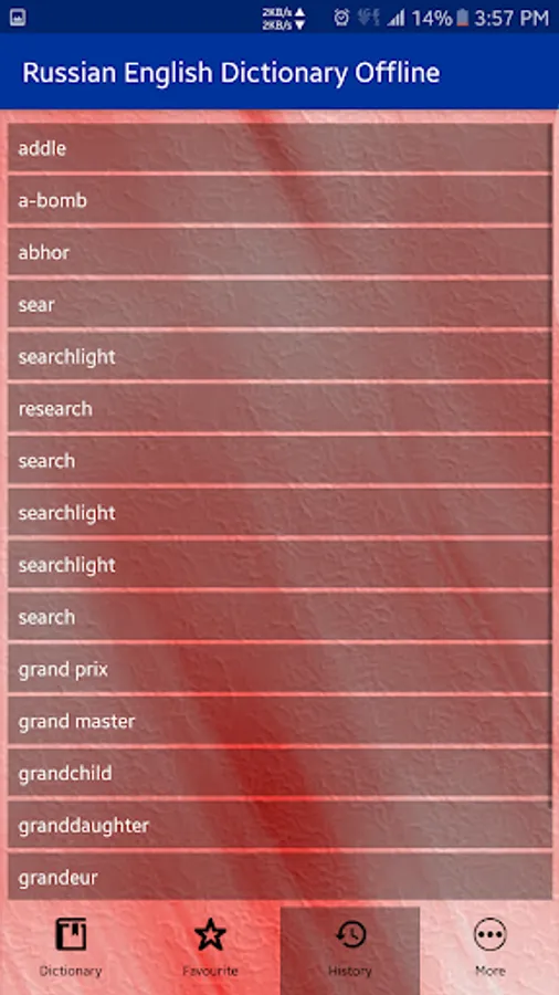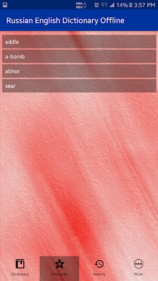 3. Favorites – you are able to add words to favorites list by clicking the “star” icon. You can remove it later on by long-pressing on it.
