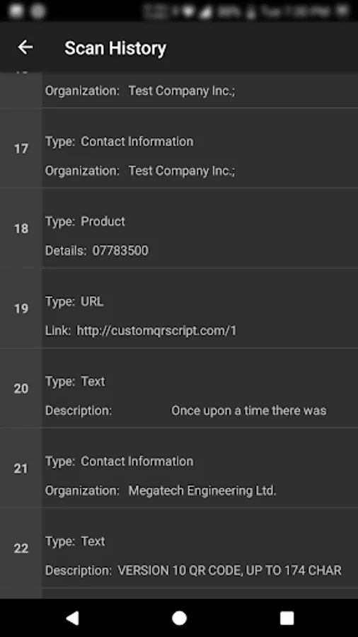 Supported formats of QR Codes, Data Matrix, PDF-417, and Aztec values, for parsing and showing results: