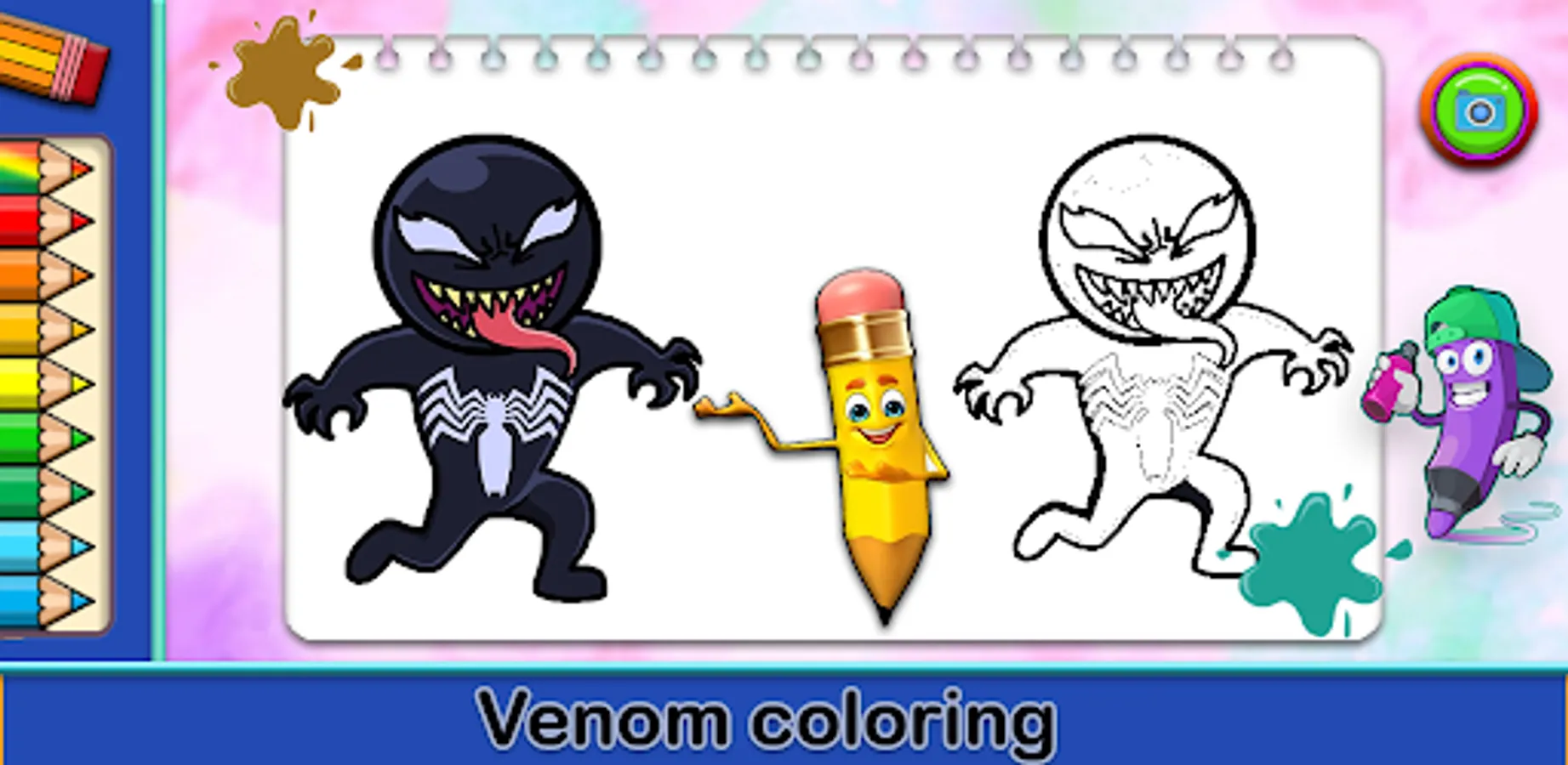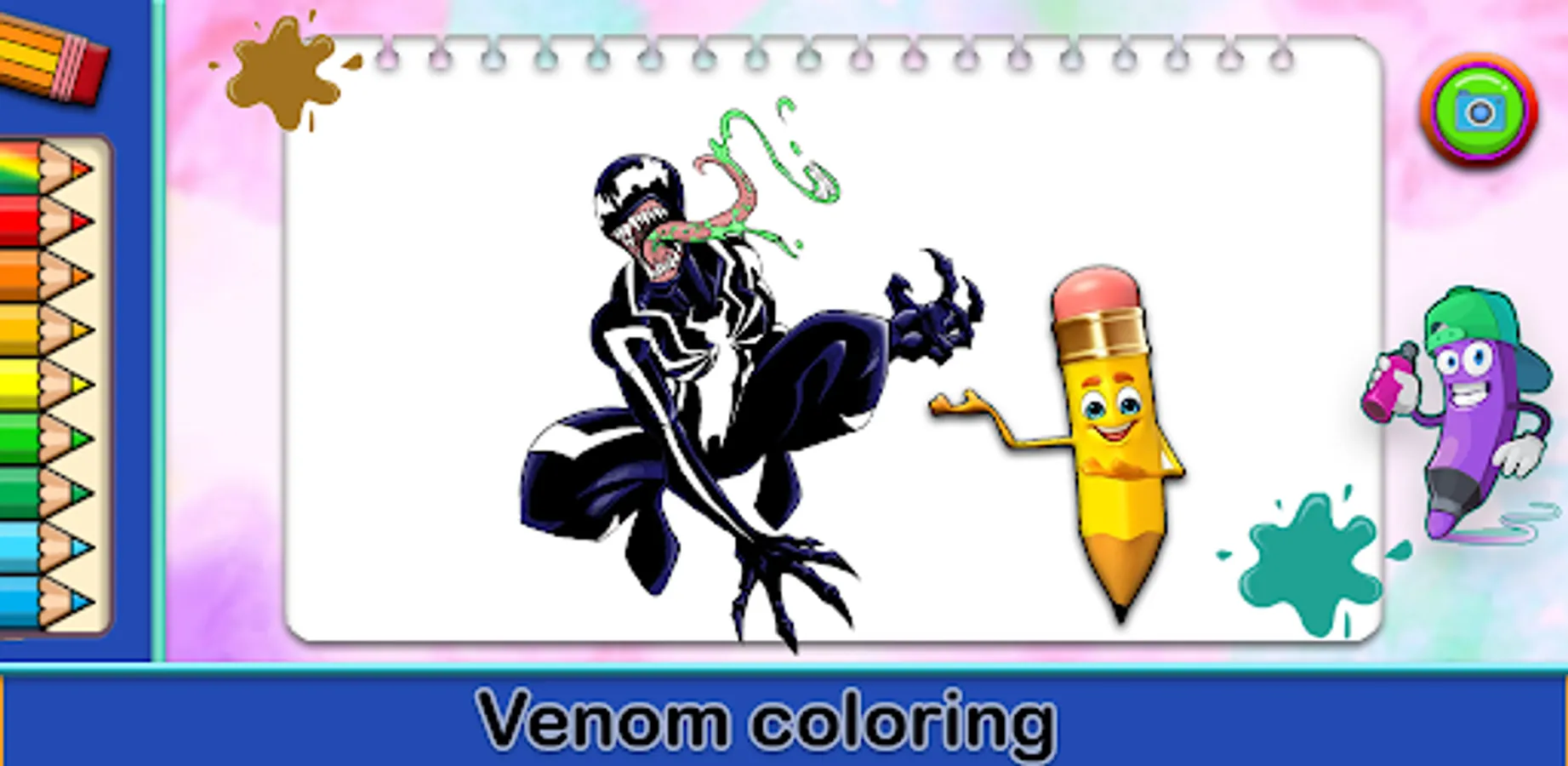 Venom boy man Coloring book game has been designed for girls and boys where they can color their favorite Spider-Boy cartoons coloring pages.