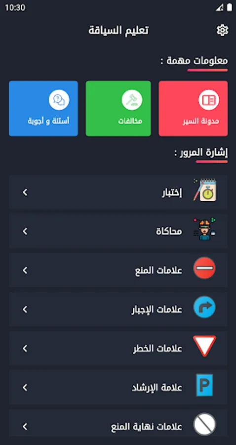 Driving instruction application (ta3lim siya9a) provides you with all the information that will help you a lot to bypass the driver's license exam without internet